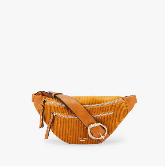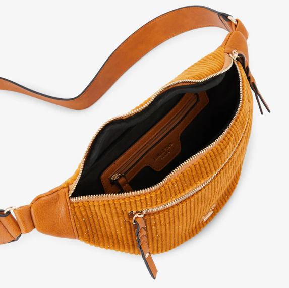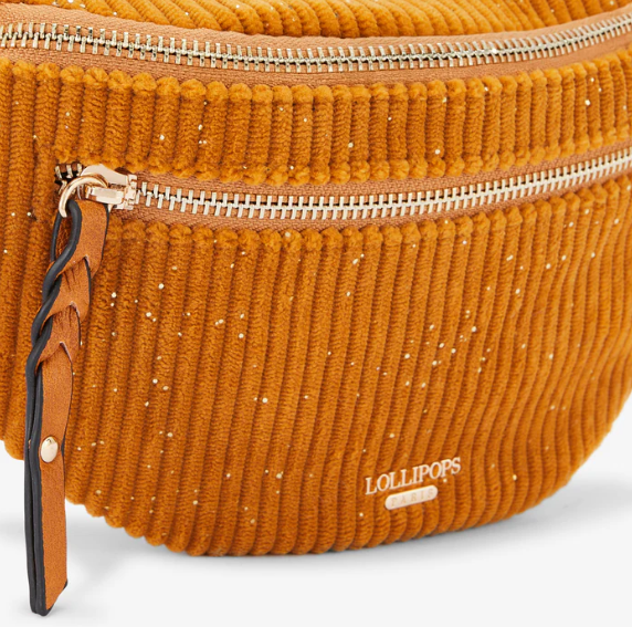 • Ceinture banane jaune en velours côtelé et simili cuir